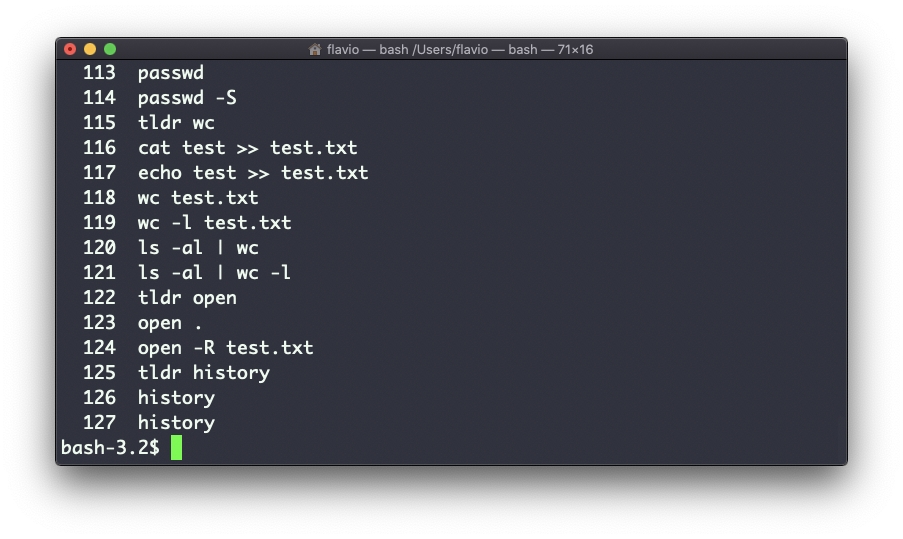 You can use the syntax !<command number> to repeat a command stored in the history. In the above example typing !121 will repeat the ls -al | wc -l command.