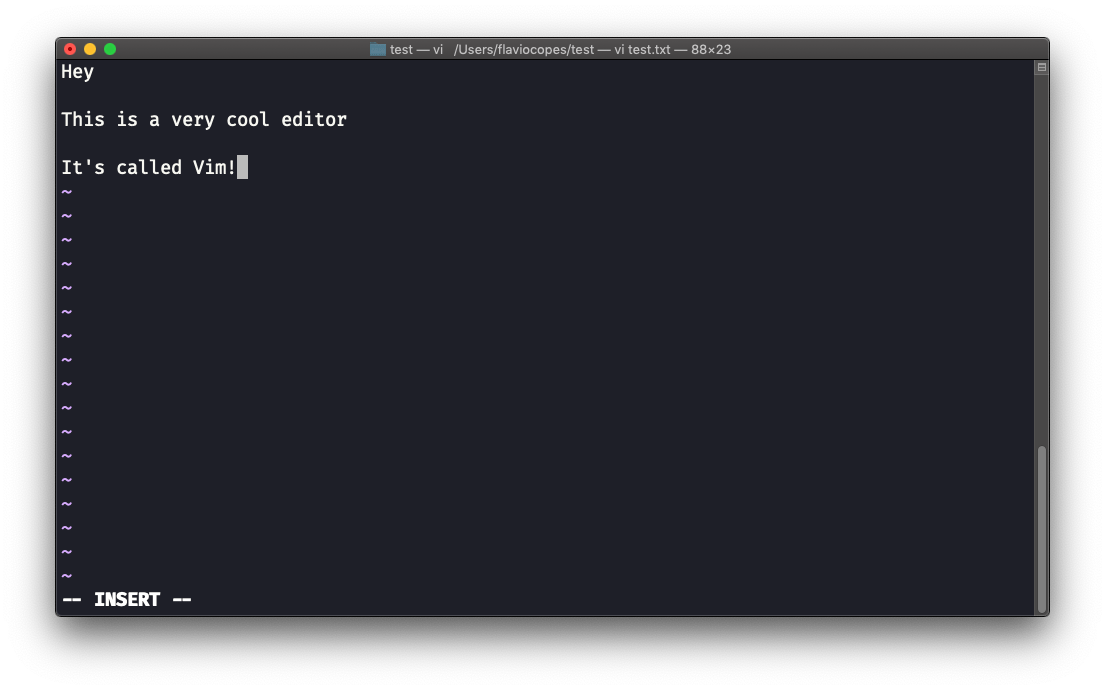 One thing you might want to do now is save the file. You can do so by pressing : (colon), then w.