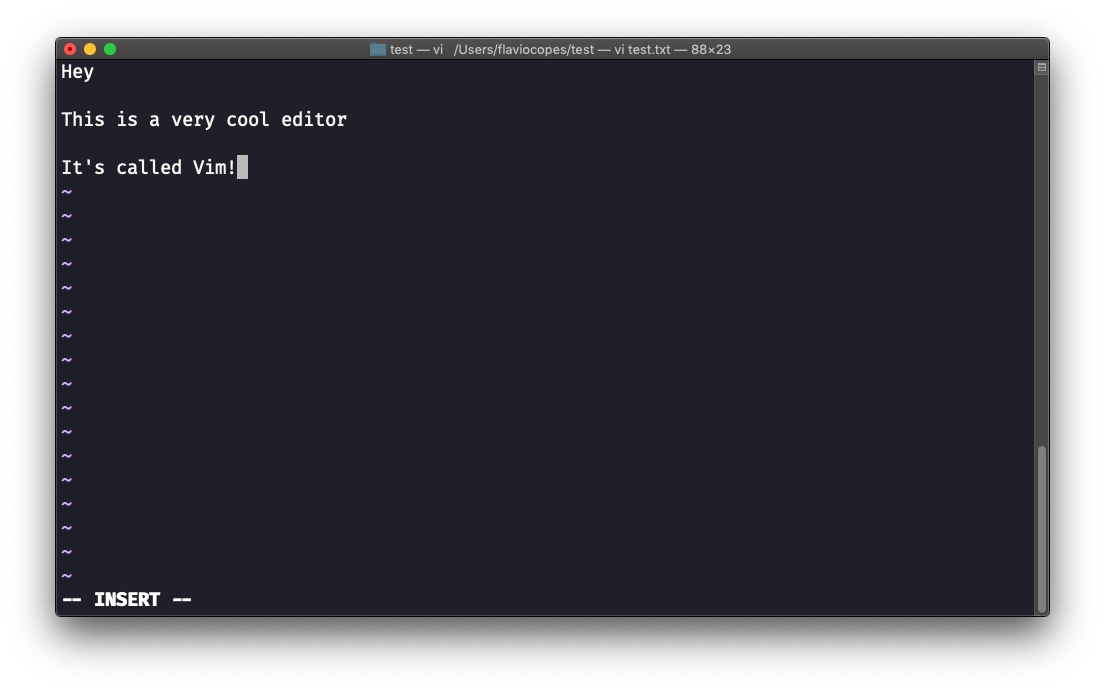 Those are the basics of working with Vim. From here starts a rabbit hole we can't go into in this little introduction.